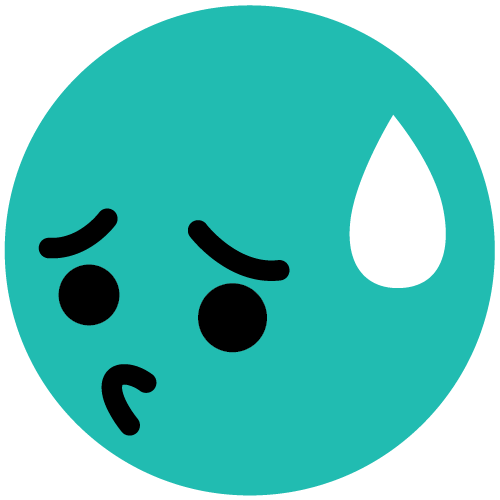 [embarrassed] – Teal face with a sweat drop; looking nervous, shy, or caught off guard.