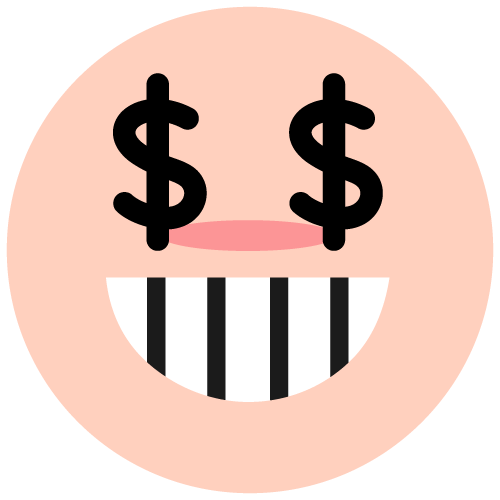 [greedy] – Face with greedy smile and dollar-eyes; looking eager or strong desire.