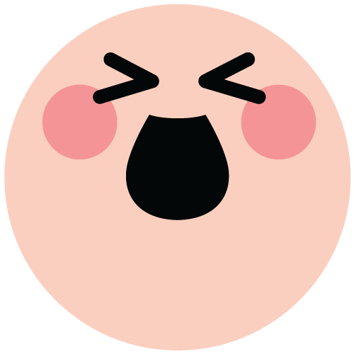 [happy] – Squinty eyes and big open mouth; represents pure excitement or joy.