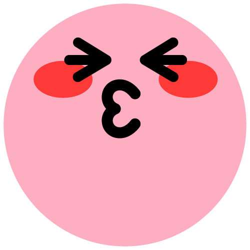[flushed] – Yellow face with Blushing cheeks; indicating cute embarrassment or flustered feelings.