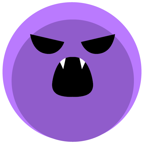 [evil] – Purple face with a sneaky grin; indicating mock evil or chaotic mood.
